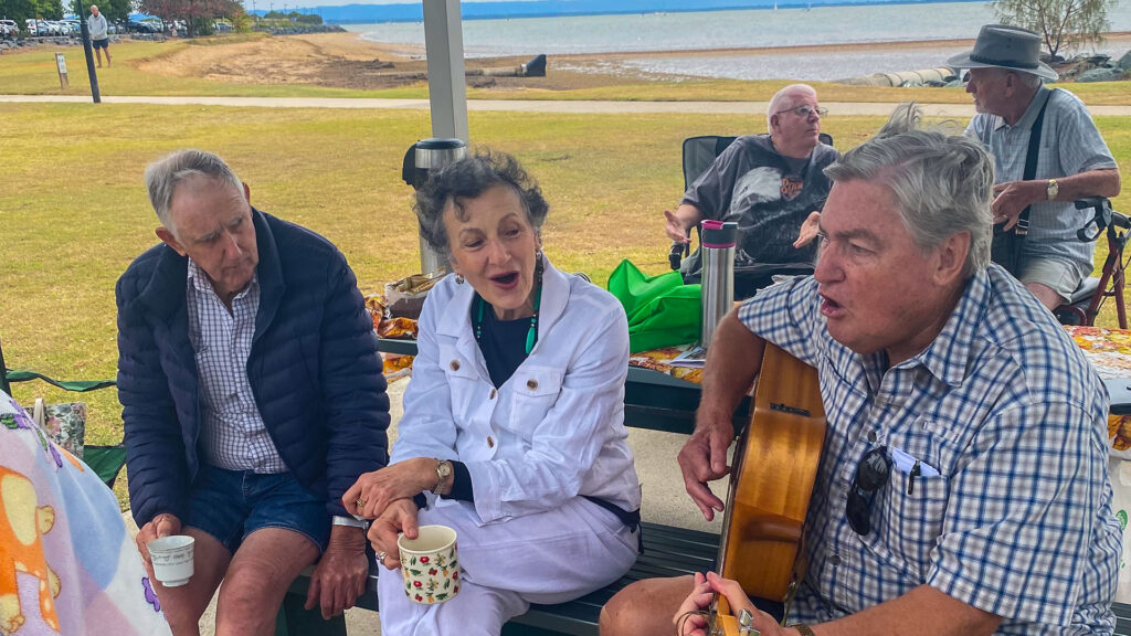 In September Tammy and I made a long trip “down under” to visit my family in Queensland. On the left is a picture of a Worship Concert I gave at my sister Claire’s for some of her neighbors. We sang some great traditional hymns like “How Great Thou Art, “Amazing Grace” and “Great is Thy Faithfulness.” We enjoyed two picnics with family – brother, sisters, in-laws, nieces and nephews and great nieces and nephews and cousins. With no piano available in the parks where we enjoyed the picnics, I played guitar, although a little rusty and with steel strings!